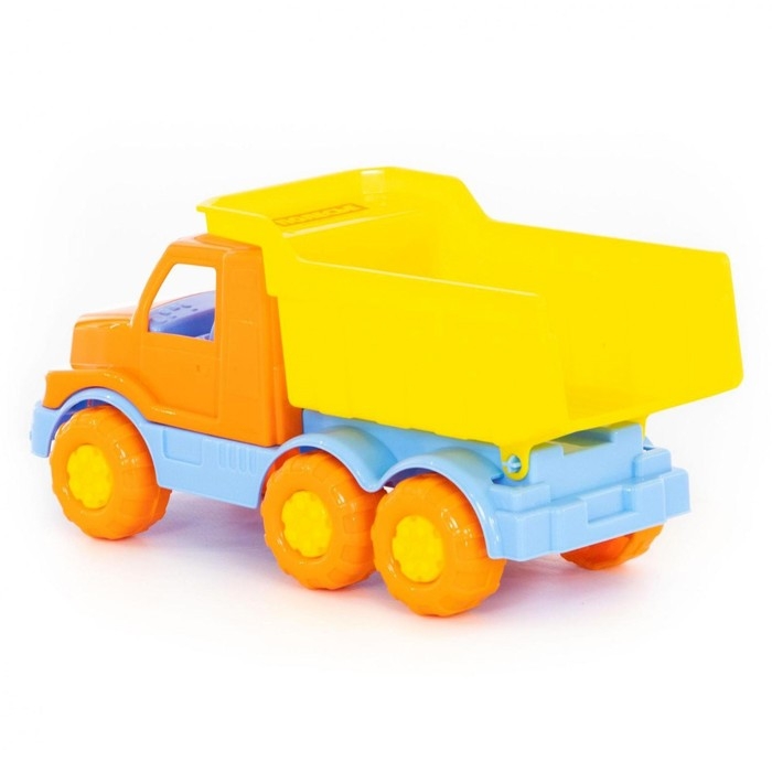 Самосвал ТМ «Полесье» порадует маленьких любителей спецтехники. Он оснащён вместительным кузовом, в который можно засыпать песок или камушки. Пластиковые колёса транспорта не поцарапают паркет или ламинат в квартире.