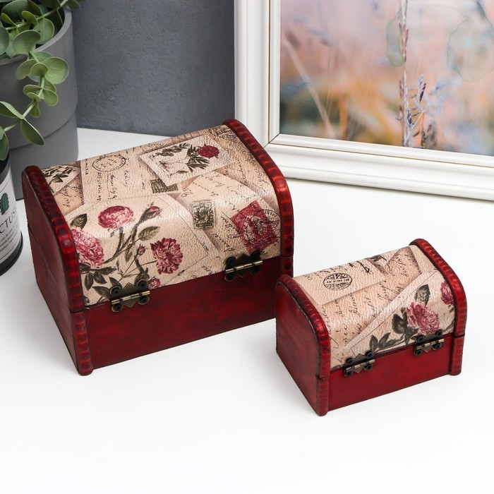 Шкатулка сундучок "Цветочное панно" (набор 2 шт), 10,5×10,5×15,2 см