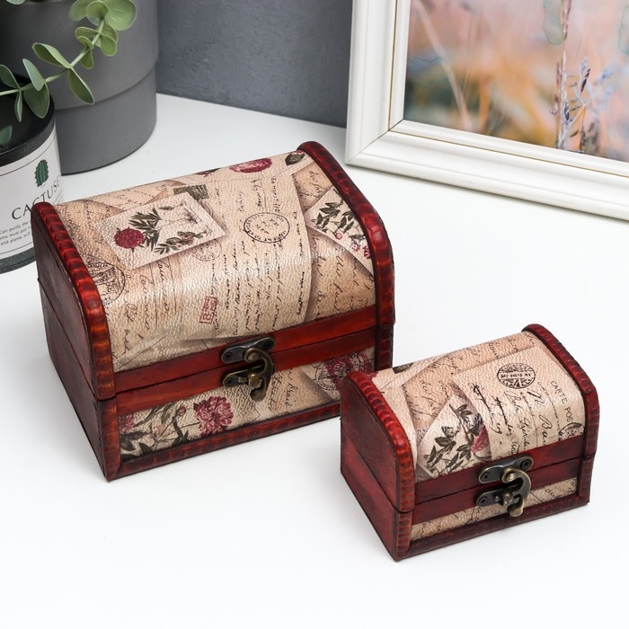 Шкатулка дерево "Средневековье" с клёпками набор 2 шт 12,6х30х18 16х34,5х23 см