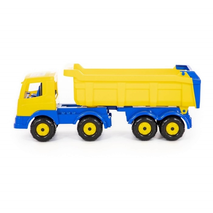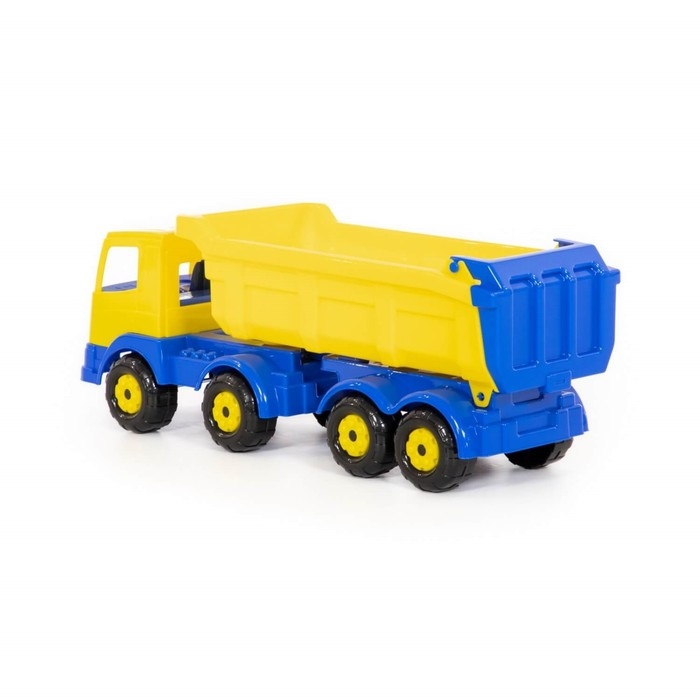 Самосвал — самая популярная игрушка среди мальчиков. Конструкция игрушки выполнена из высококачественного прочного пластика, а также лишена острых углов. Она оснащена вместительным откидным кузовом, в который можно засыпать песок или камушки.