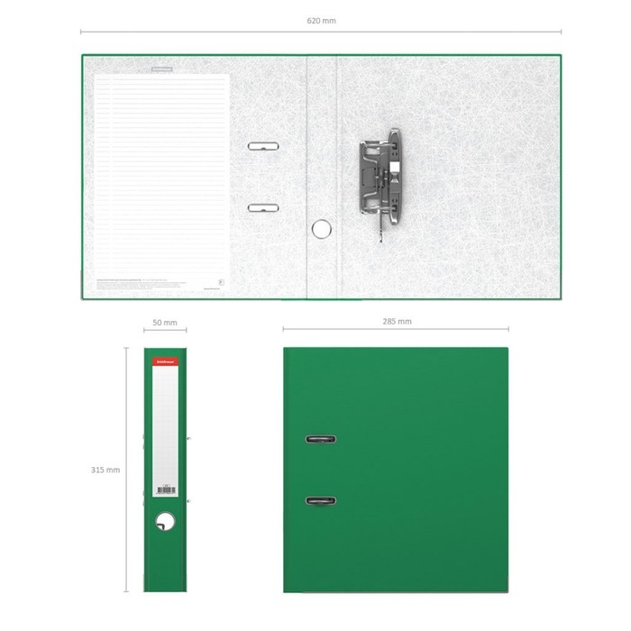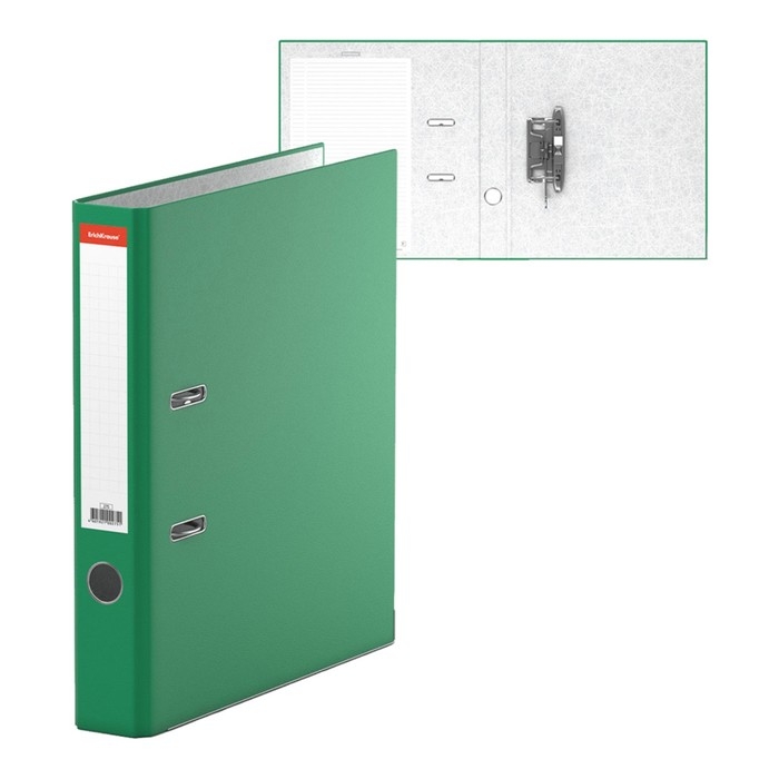 Папка-регистратор А4, 50 мм, ErichKrause Standard, бумвинил, с этикеткой на корешке, нижний металлический кант, зеленая