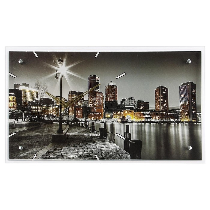 Часы-картина настенные, интерьерные "Ночной город и архитектура", бесшумные, 35 х 60 см
