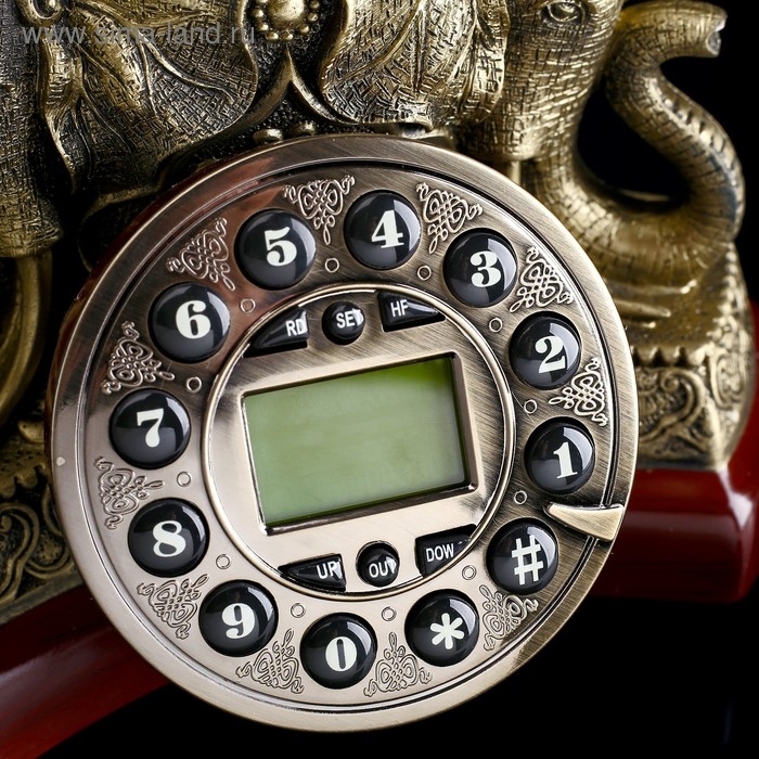 Ретро-телефон "Слон", 28 х 28 см, бронза изготовлен по образу и подобию старых телефонов конца ХIХ - начала ХХ веков. Но на самом деле это стационарный телефон, оснащённый современными функциями и возможностями. Такой телефонный аппарат будет превосходно смотреться в гостиной, на ресепшене в отеле или ресторане, а также в рабочем кабинете при правильно подобранном общем стиле помещения. Приобретая ретро-телефон вы добавите пространству нотку изысканности и роскоши. Такой девайс послужит показателем вашего отменного вкуса и позволит постоянно оставаться на связи.