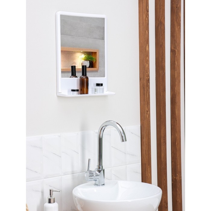Высокие бортики предохраняют ваши косметические средства от падения, а аккуратная перфорация избавит от скопления воды. При необходимости полку можно сложить. Белорусский пластик будет радовать вас качеством и длительным сроком службы, а входящие в состав дюбеля и шурупы помогут надежно закрепить набор на стене. Улыбнитесь вашему отражению!