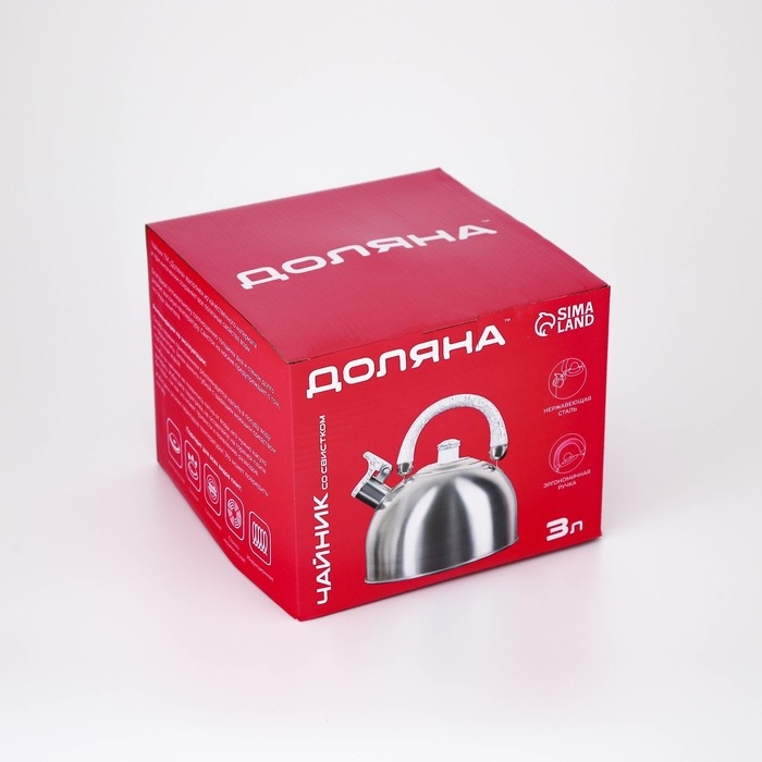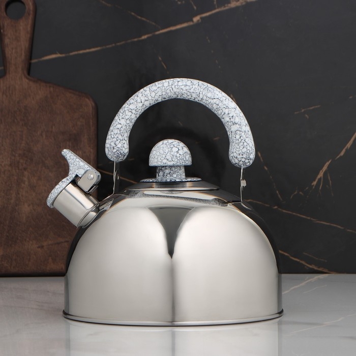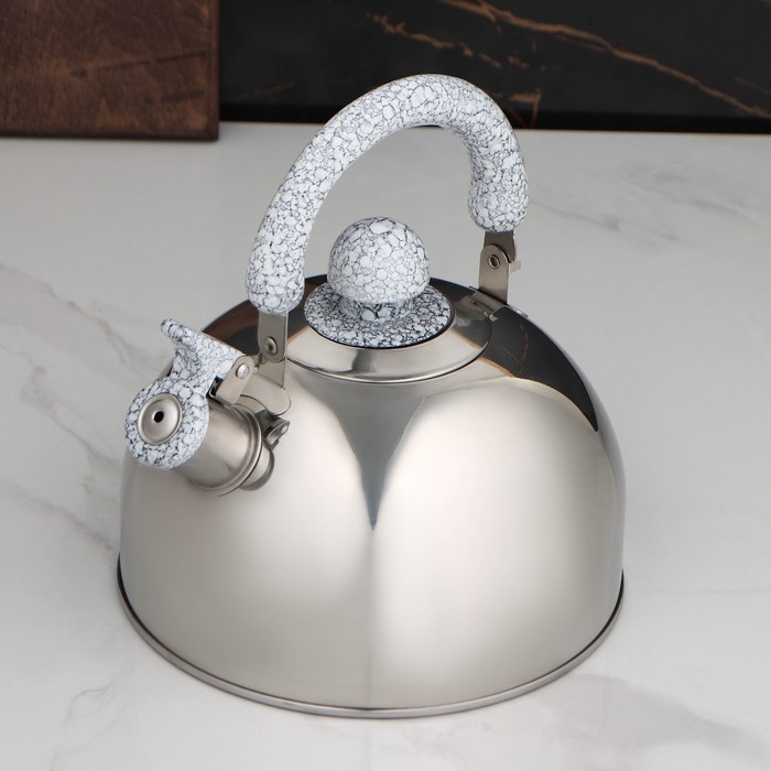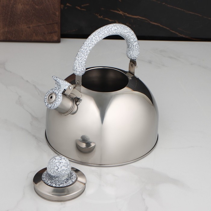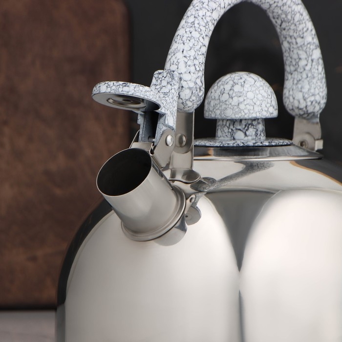 Чайник со свистком из нержавеющей стали Доляна «Мрамор», 3 л, фиксированная ручка, цвет хромированный