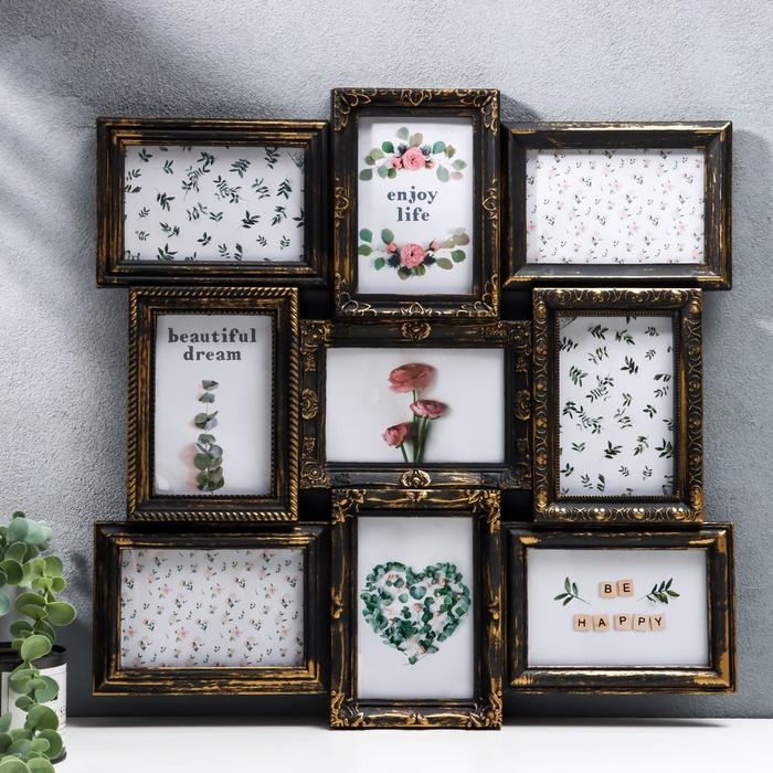 Фоторамка пластик на 9 фото 10х15 см "Бронзовый век" 49,5х48 см