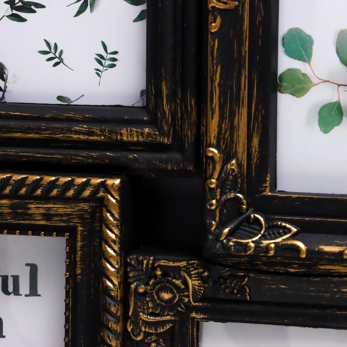 Фоторамка пластик на 3 фото 10х15, 13х13 см "Виноград" тёмное золото 26х33 см