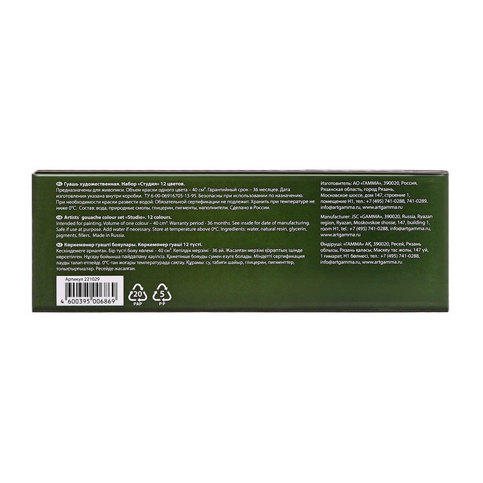 Гуашь художественная набор 12 цветов х 40 мл, Гамма "СТУДИЯ", 221029