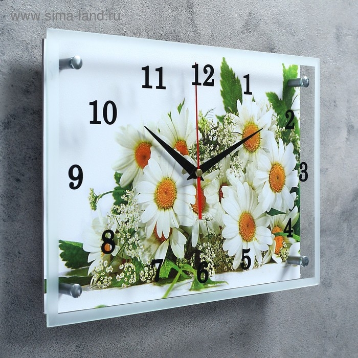 Часы-картина настенные, интерьерные "Ромашки", бесшумные, 25 х 35 см