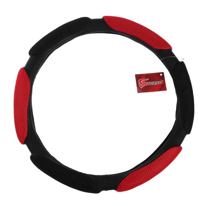 Оплетка на руль TORSO, анатомическая, 6 подушек, размер 38 см, черно-красный