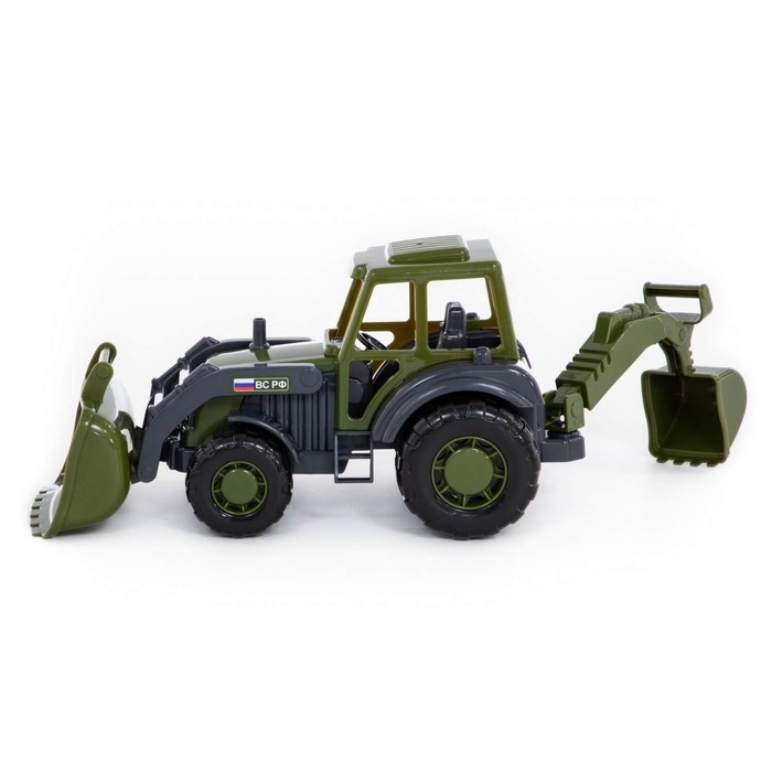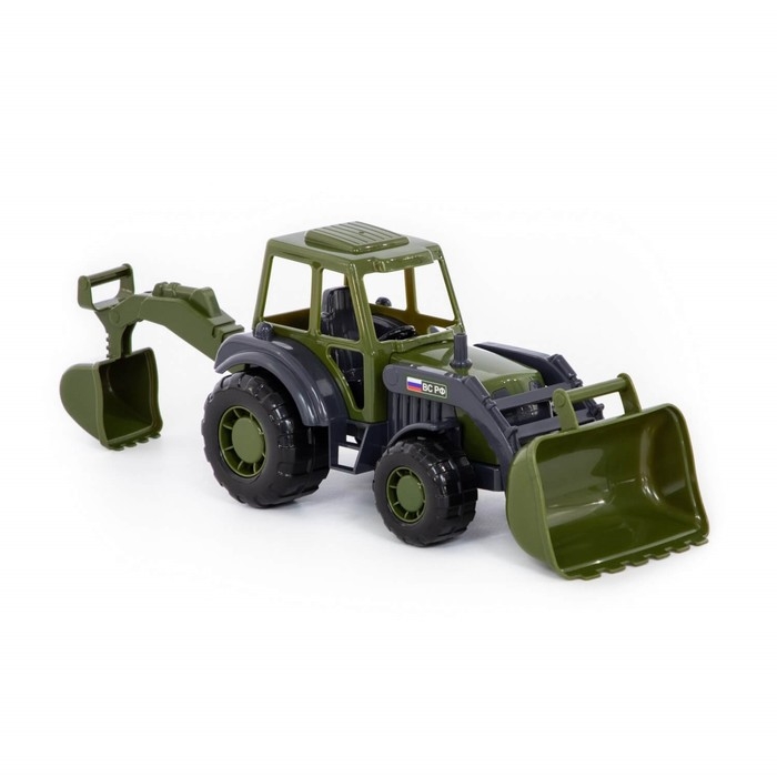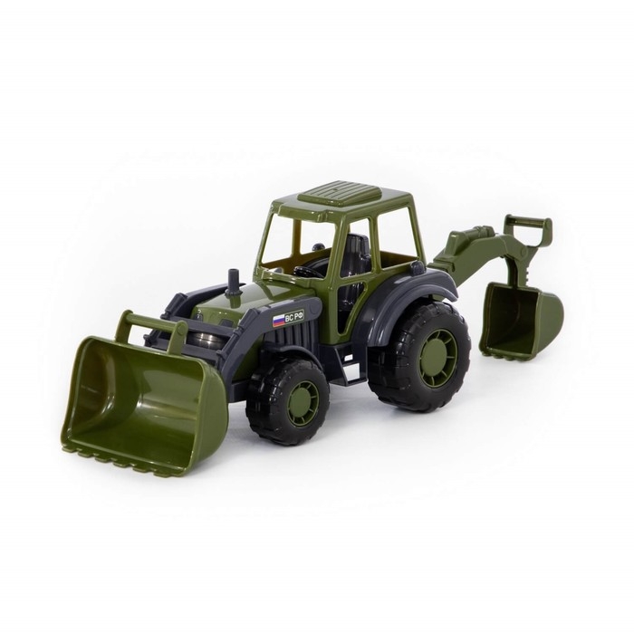 Трактор — это незаменимый вид техники на любой ферме. Он оснащён широким ковшом для игр с песком. Благодаря большим пластиковым колёсам игрушка подойдёт для развлечений дома и на улице.
