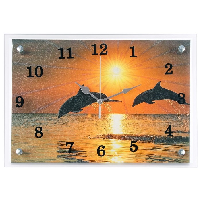 Часы-картина настенные, интерьерные "Дельфины на закате", бесшумные, 25 х 35 см