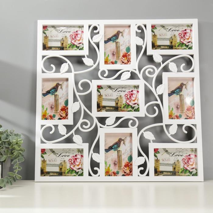 Фоторамка пластик на 9 фото 10х15 см "Вьюнок" белая 53х53 см