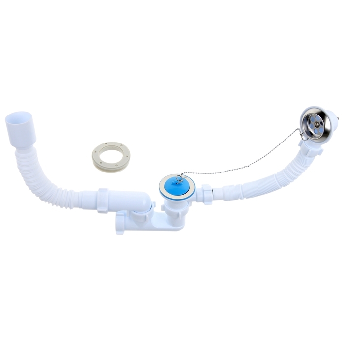 Сифон для ванны Akvater, 1 1/2"х40мм, выпуск и перелив, гофра 40х40/50мм, пробка без цепочки