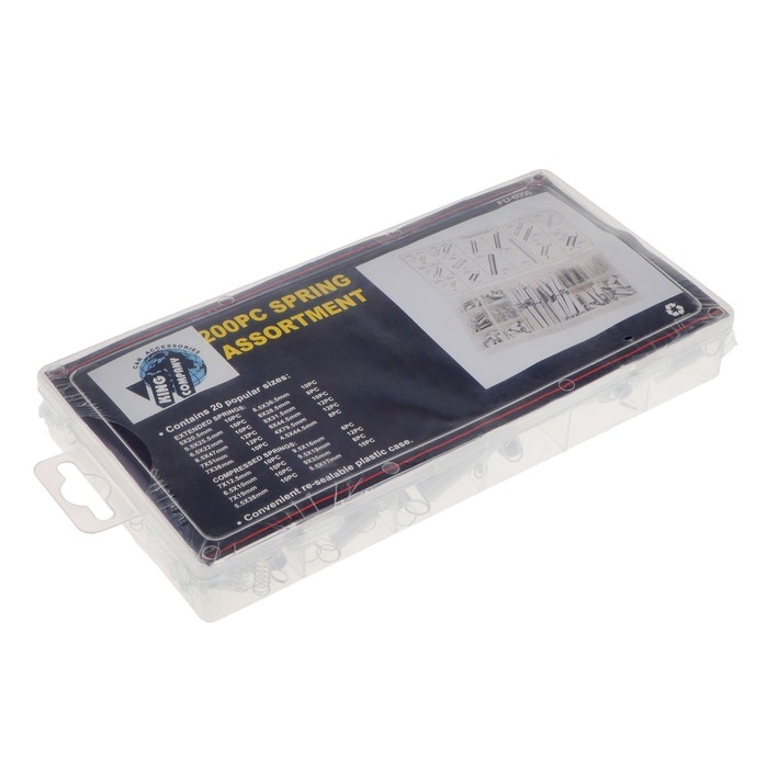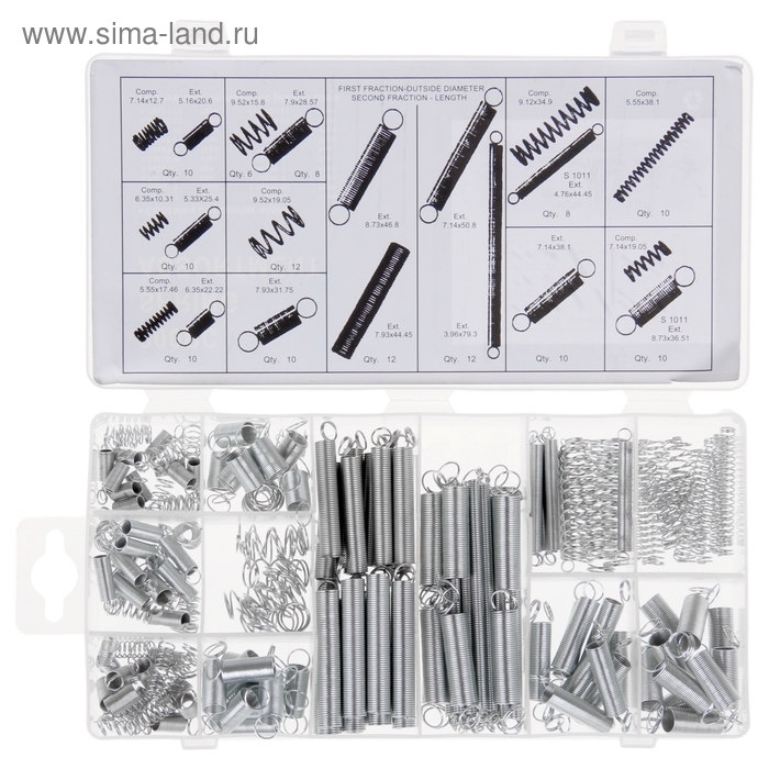 В комплект вошли пружины сжатия и пружины растяжения. Они изготовлены из стали, которая имеет высокие прочностные и упругие свойства. Набор поставляется в пластиковом кейсе и имеет отсеки под каждый размер для удобного хранения.
