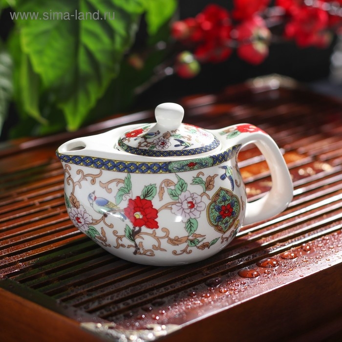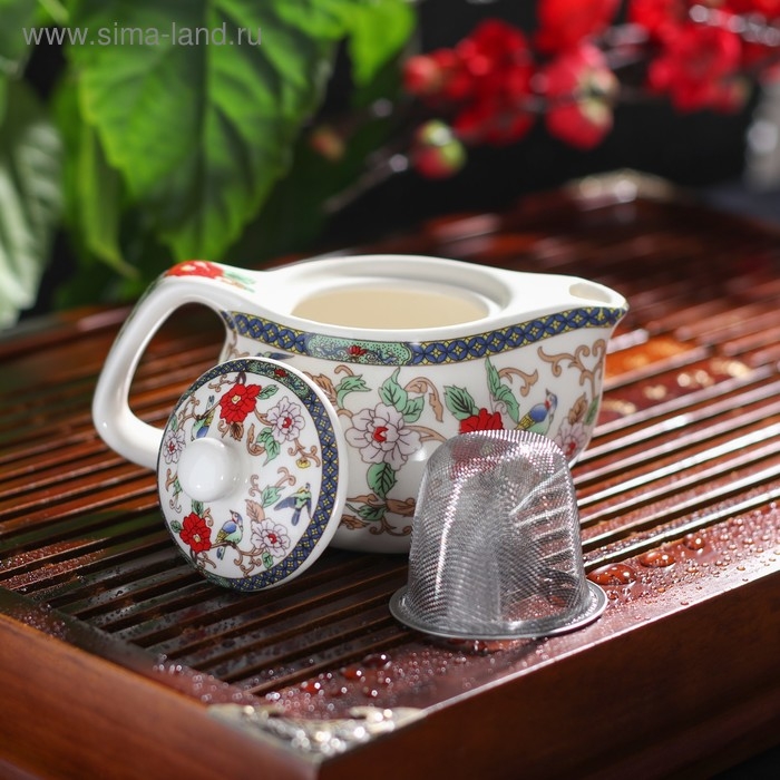 Чайник керамический заварочный с металлическим ситом «Цветы», 200 мл