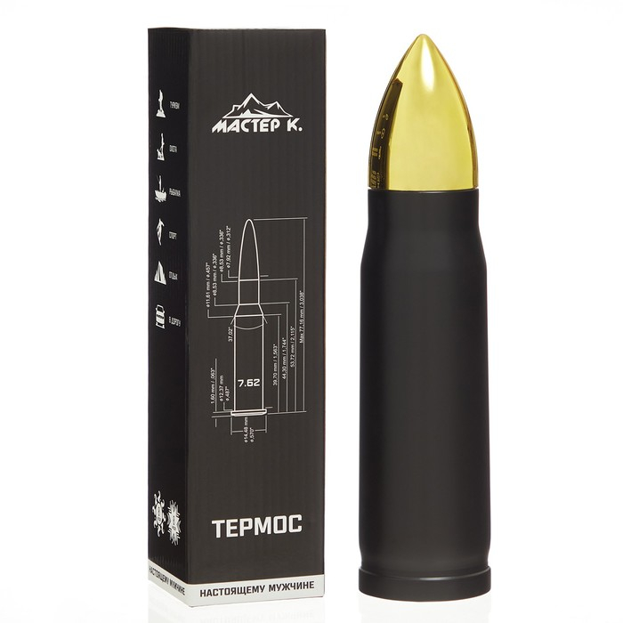 Термоc, 450 мл, Пуля "Мастер К", 28 х 7 см, чёрный