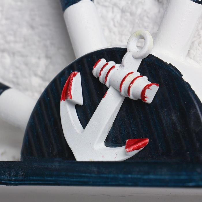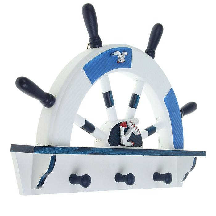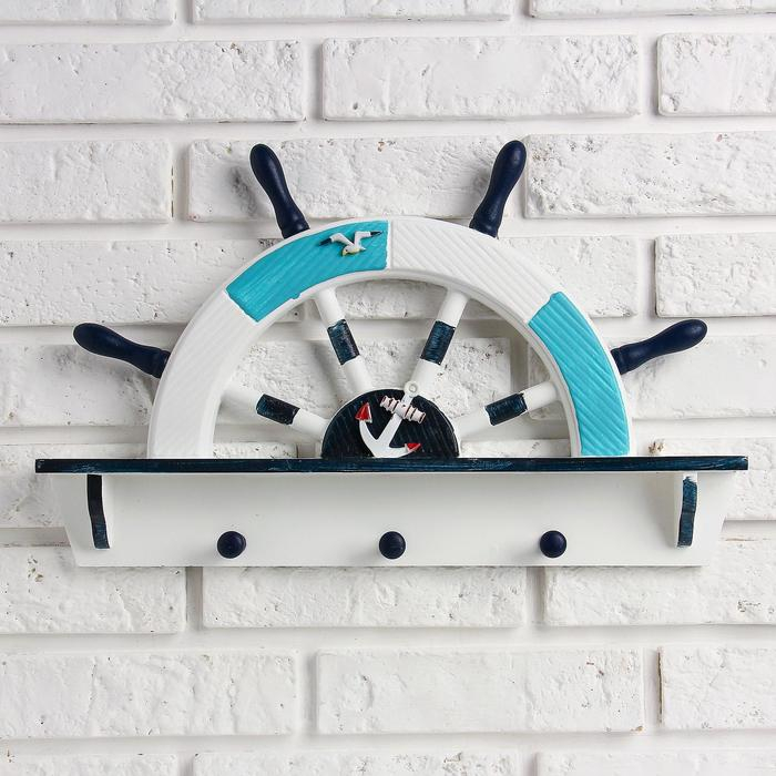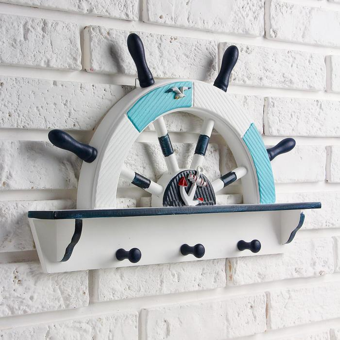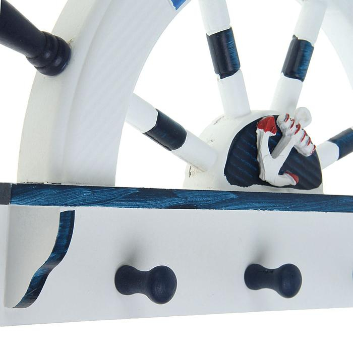 Вешалка интерьерная «Штурвал», 3 крючка, бело-синяя, 45 х 28 х 5 см