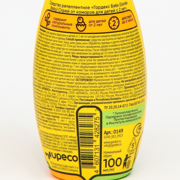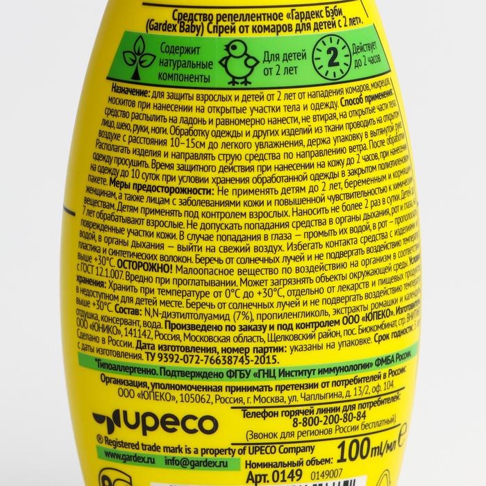 Спрей от комаров Gardex Baby, детский, от 3х месяцев, 75 мл