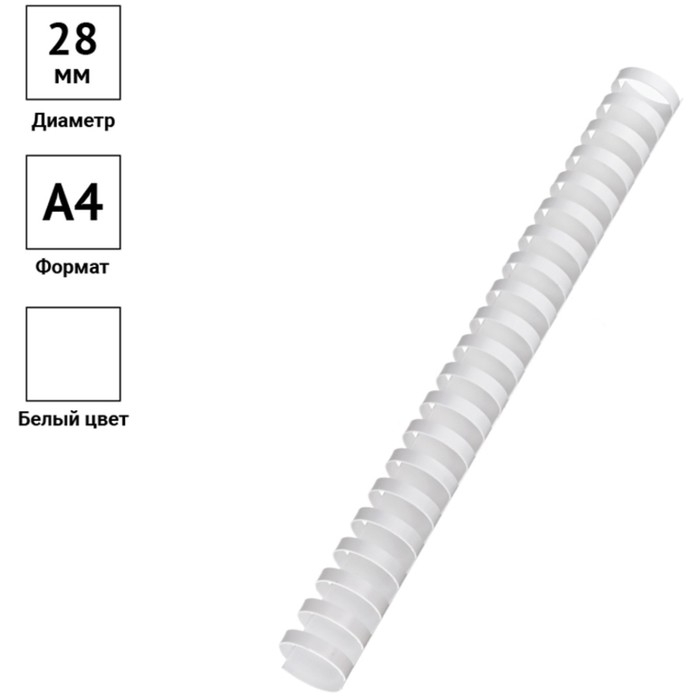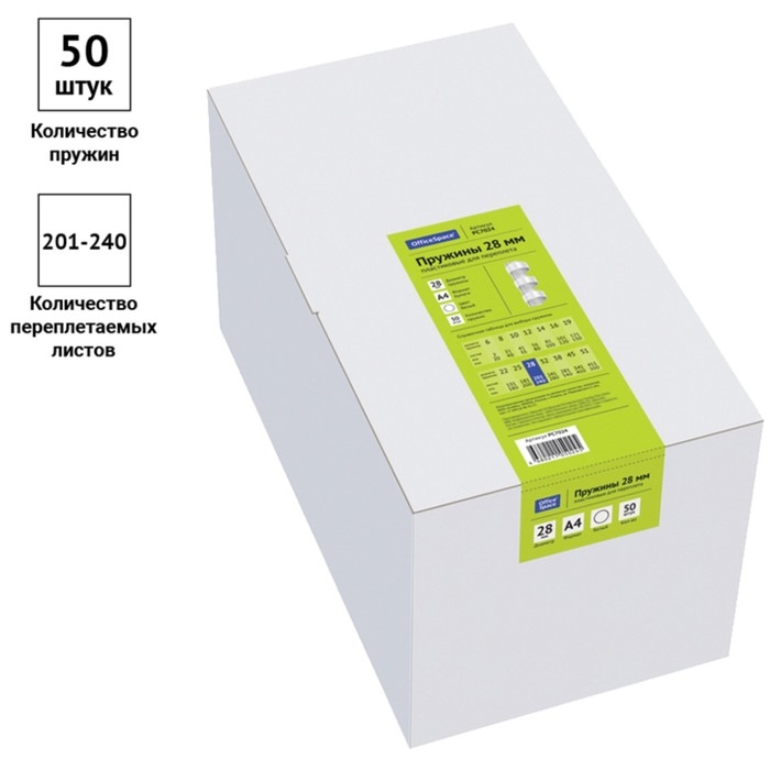 Пружины пластиковые для переплёта 50 штук, OfficeSpace, 28 мм, (для сшивания 201-240 листов), белые