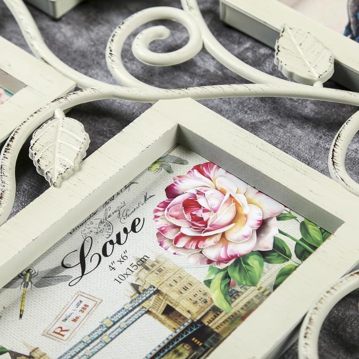 Фоторамка пластик на 3 фото 10х15 см "Вишнёвый сад" белый 32х27 см