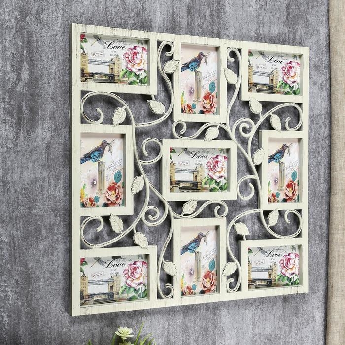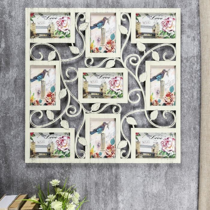 Фоторамка пластик на 9 фото 10х15 см "Вьющийся лист" бежевая 55х55 см