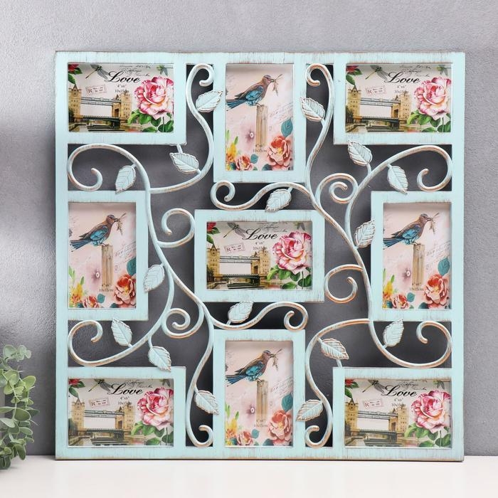 Фоторамка пластик на 9 фото 10х15 см "Вьющийся лист" мятная 55х55 см