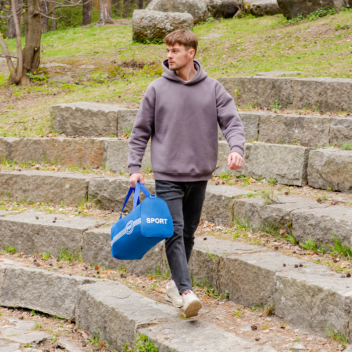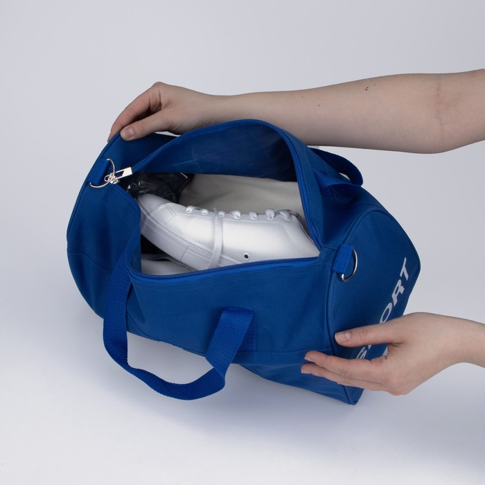 Сумка спортивная на молнии, длинный ремень, маленький размер, цвет синий