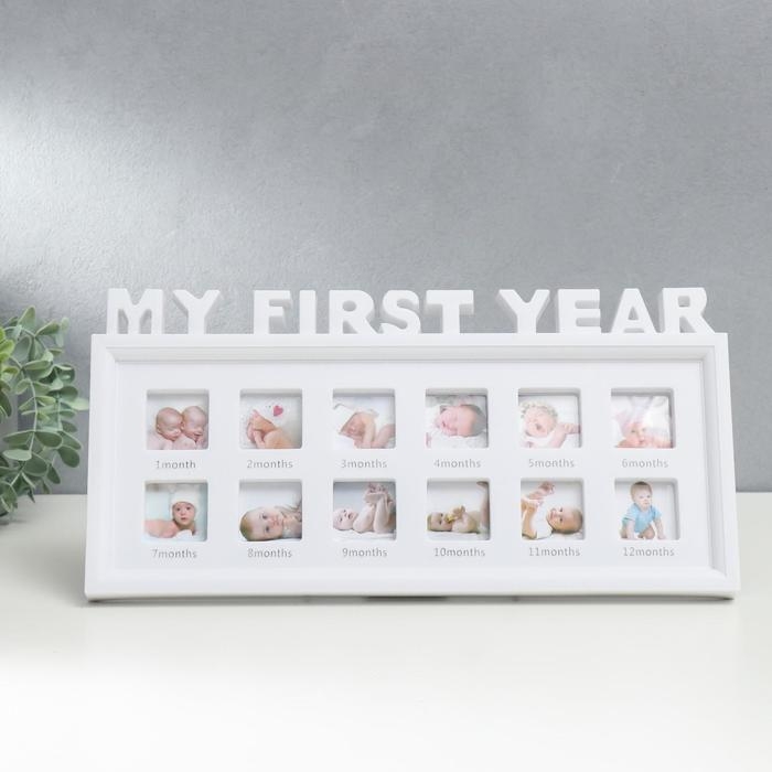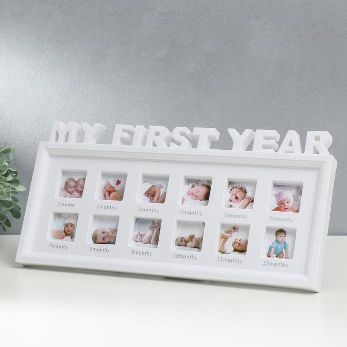 Фоторамка пластик на 12 фото 4х4 см "Мой первый год" белая 41х20 см