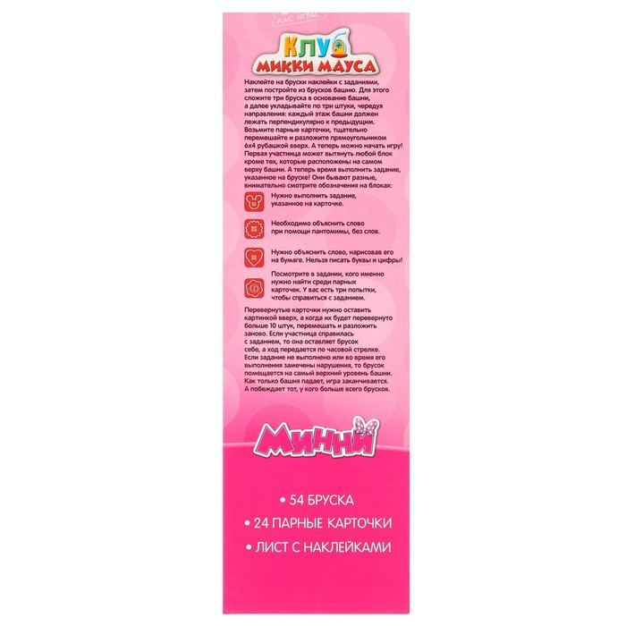 Игра Падающая башня "Для лучших подруг", Минни Маус, 54 бруска