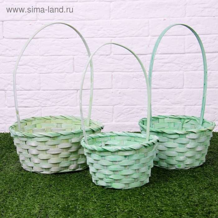 Набор корзин плетёных, бамбук, 3 шт., светло-зелёный цвет