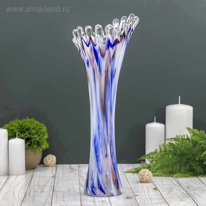 Ваза "Коралл" 38 см, бело-сине-марганцевая