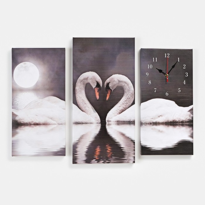 Часы-картина настенные, модульные, "Пара лебедей", бесшумные, 60 х 80 см, триптих