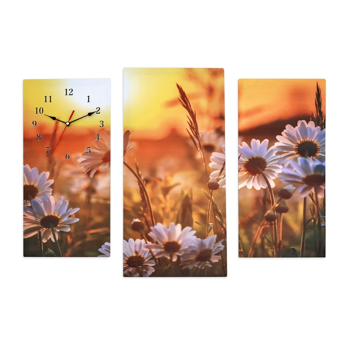 Часы-картина настенные, модульные "Ромашки на закате", бесшумные, 60 х 80 см