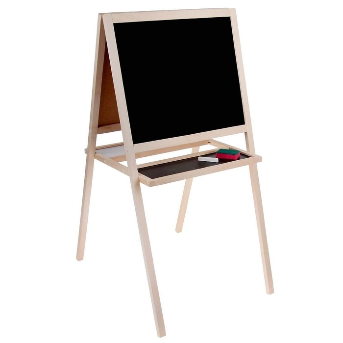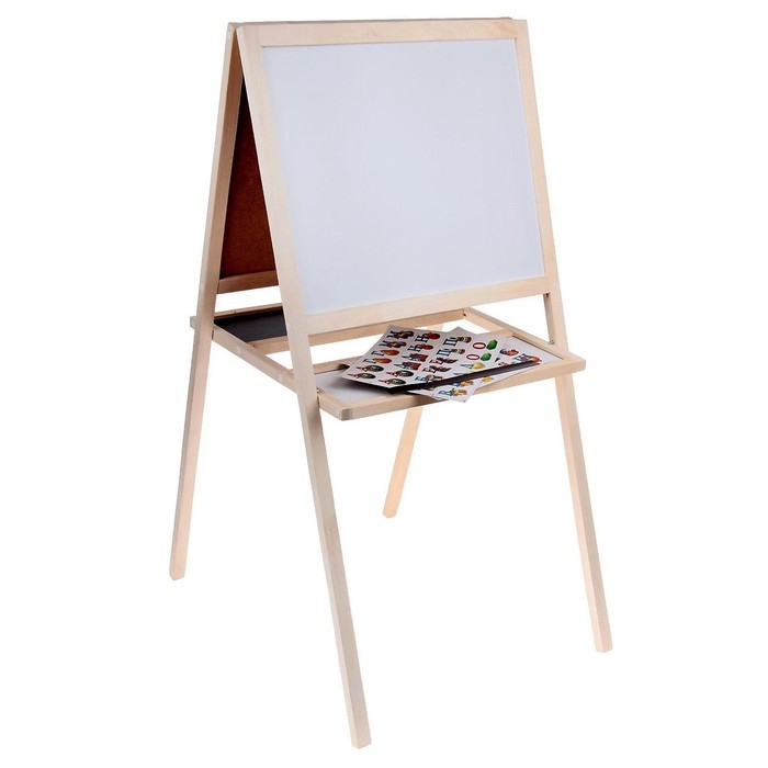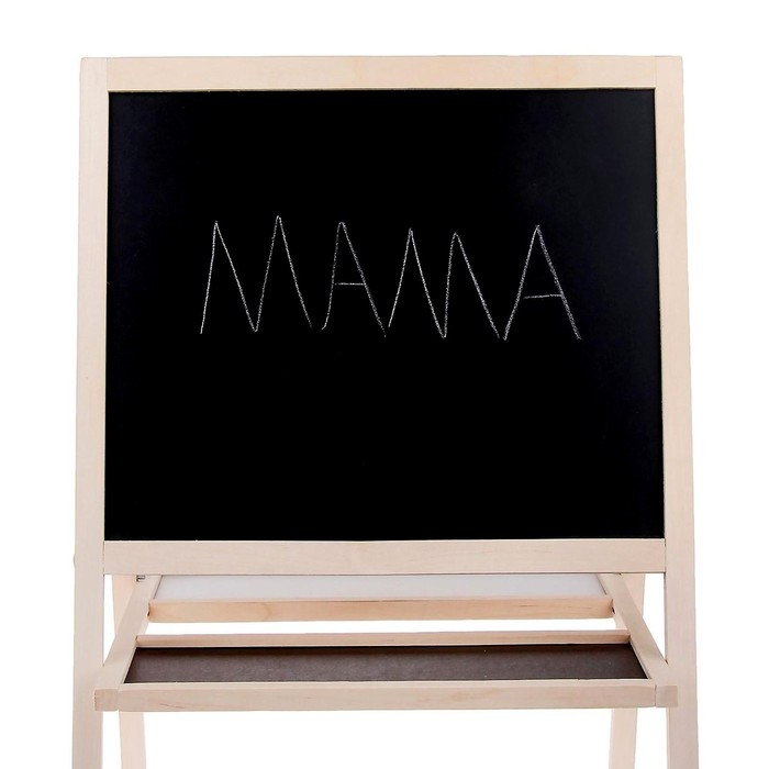 Двусторонний мольберт ТМ «Марич» отлично подойдёт для занятий творчеством и подготовке к школе. Конструкция полностью выполнена из дерева, между ножками предусмотрена полочка для канцелярских принадлежностей.