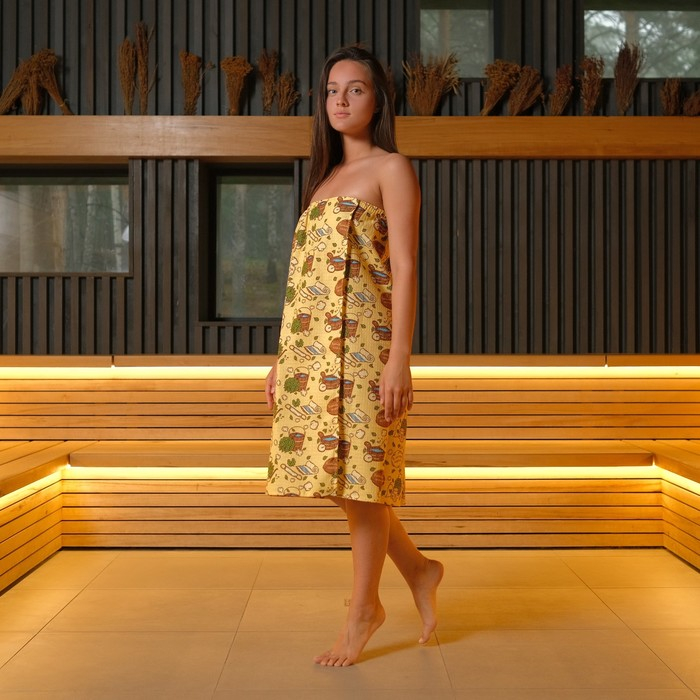 Полотенце для бани "С легким паром" жен. парео,80х150см,хл., ваф. полотно