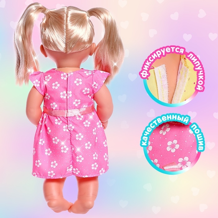 Одежда для пупса: платье розовое в цветочек, с бантиком