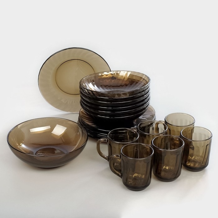 Набор столовый стеклянный Ocean Eclipse, 31 предмет, цвет коричневый