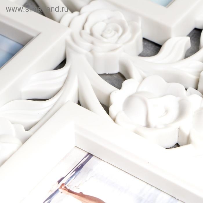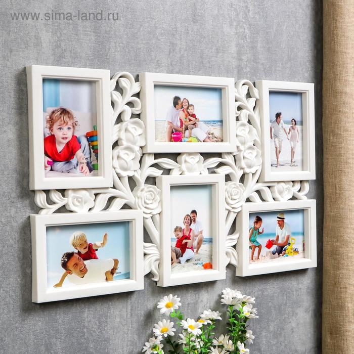 Фоторамка пластик на 6 фото 10х15 см "Куст роз" белая 35,5х56,5х2 см