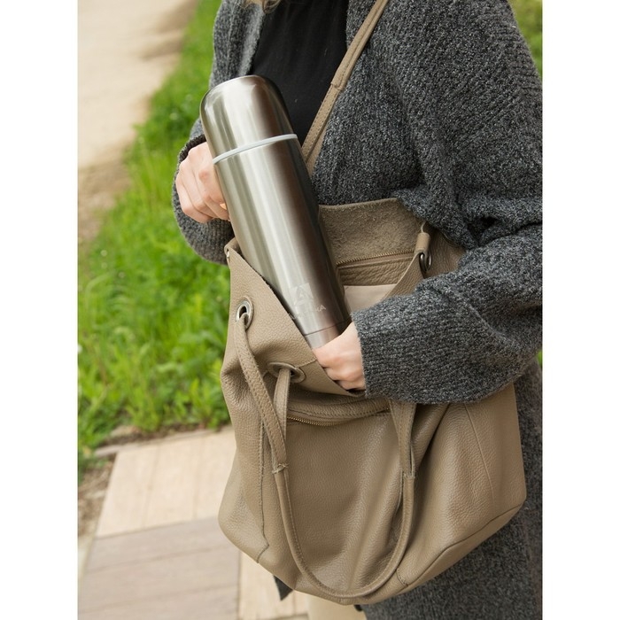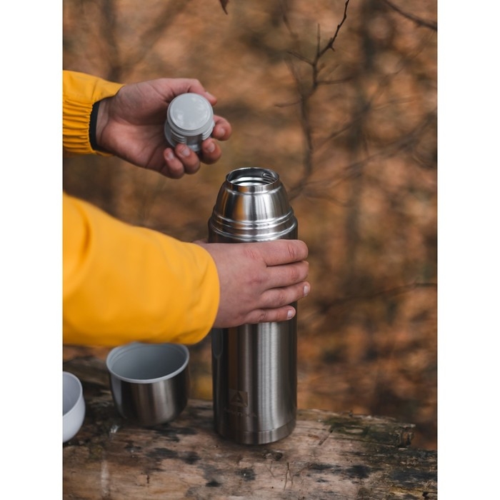 Этот термос небольшой, но вместительный: он ниже других, но имеет такой же объем, за счет чего его удобно носить в рюкзаке или сумке. Особенно этот термос любим рыбаками, ведь он идеально подходит по размеру рыболовного ящика.