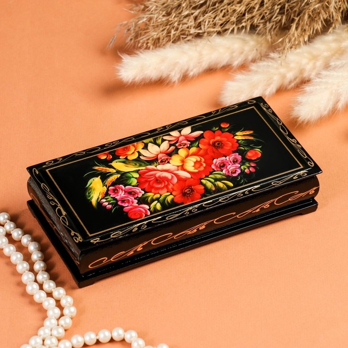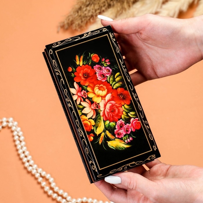 Шкатулка - купюрница «Полевые цветы», 8,5×17см, лаковая миниатюра