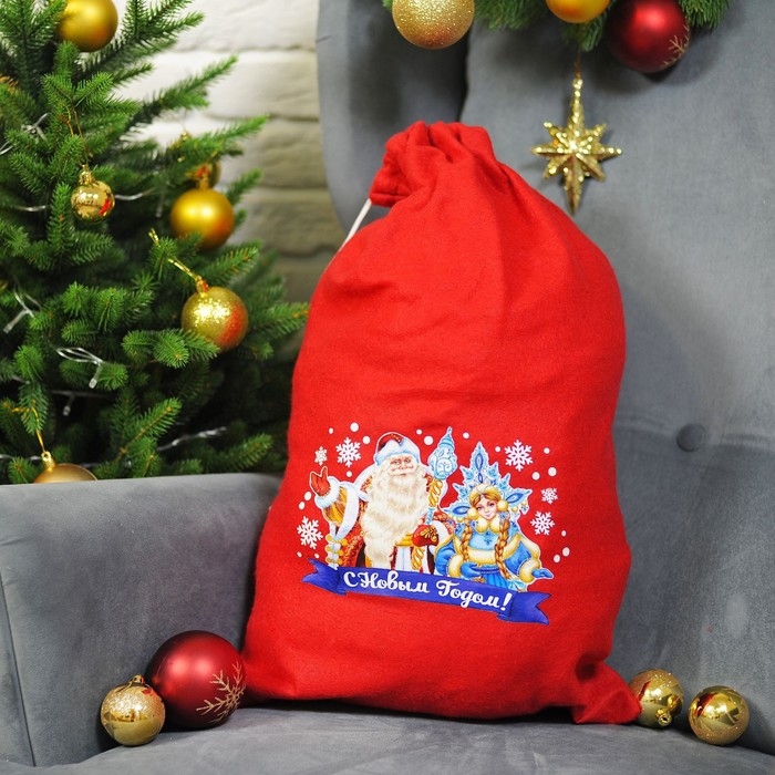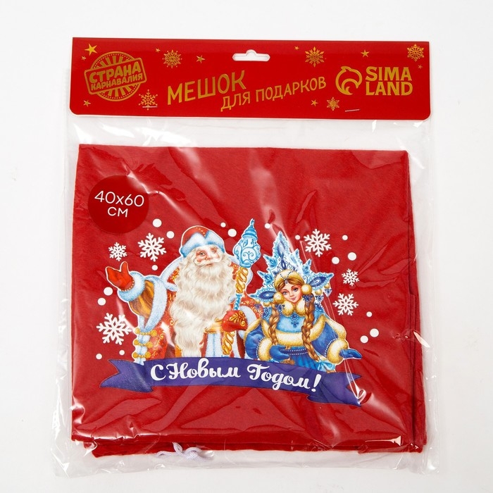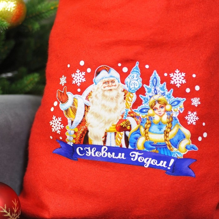 Новогодний мешок Деда Мороза «С Новым Годом», Дед Мороз и Снегурочка, 40 х 60 см.