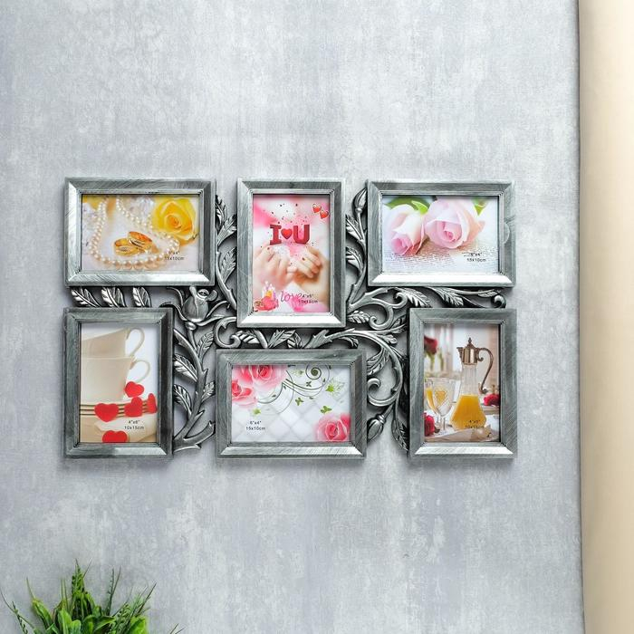 Фоторамка пластик на 6 фото 10х15 см "Бутон" серебро 52х32 см