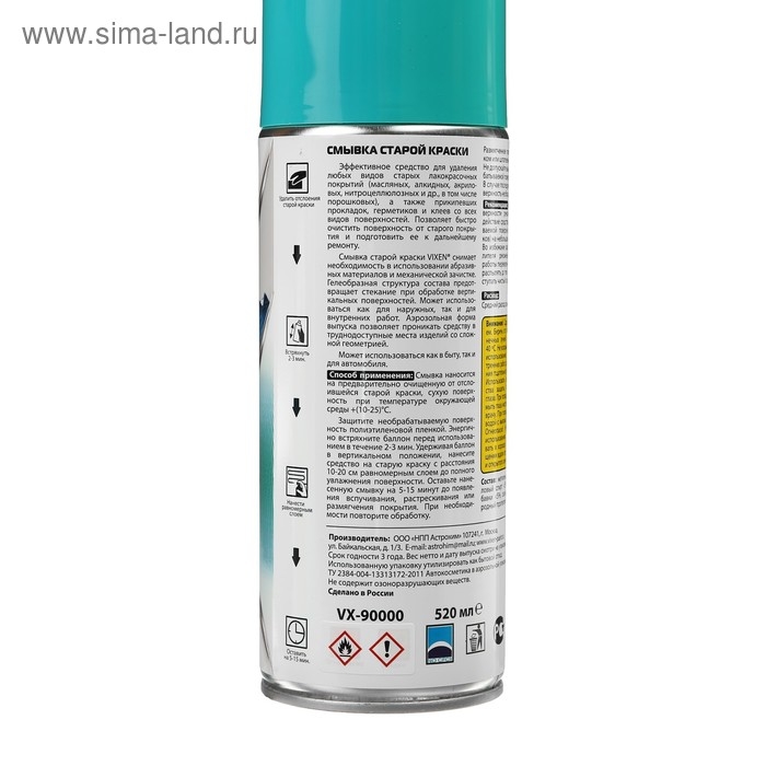 Смывка старой краски Vixen в формате аэрозоля объёмом 520 миллилитров представляет собой эффективное средство для устранения устаревших лакокрасочных материалов с разнообразных поверхностей. Быстро и без затруднений удаляет краску, лаки, эмали и прочие виды покрытий без нанесения ущерба поверхности.