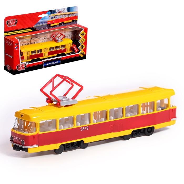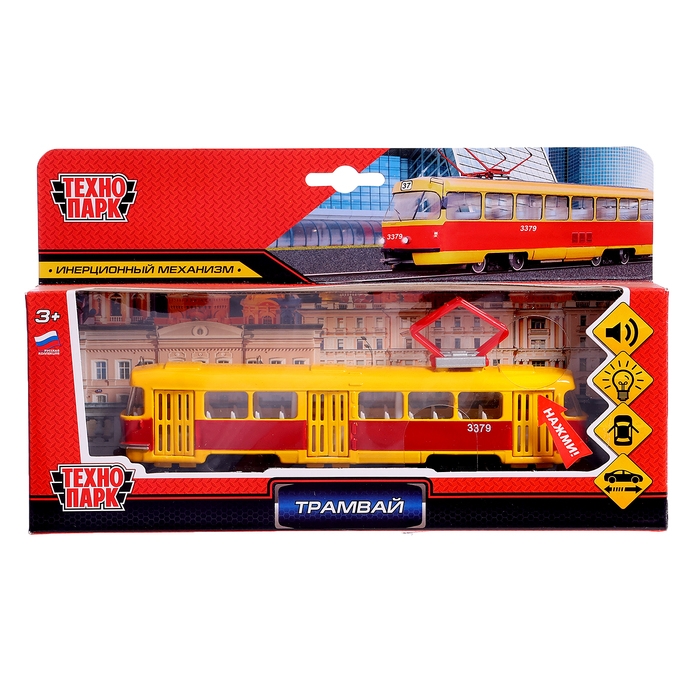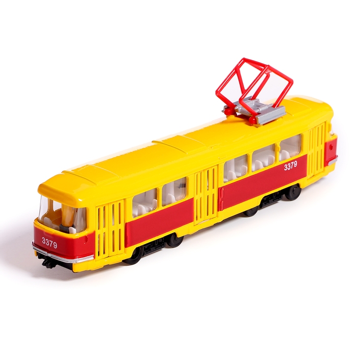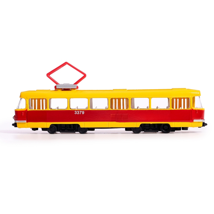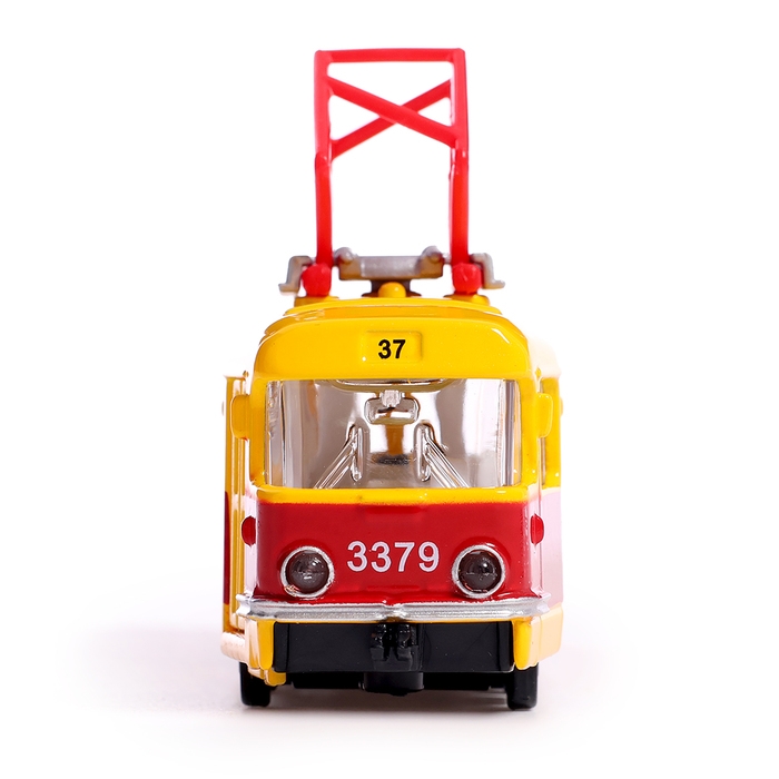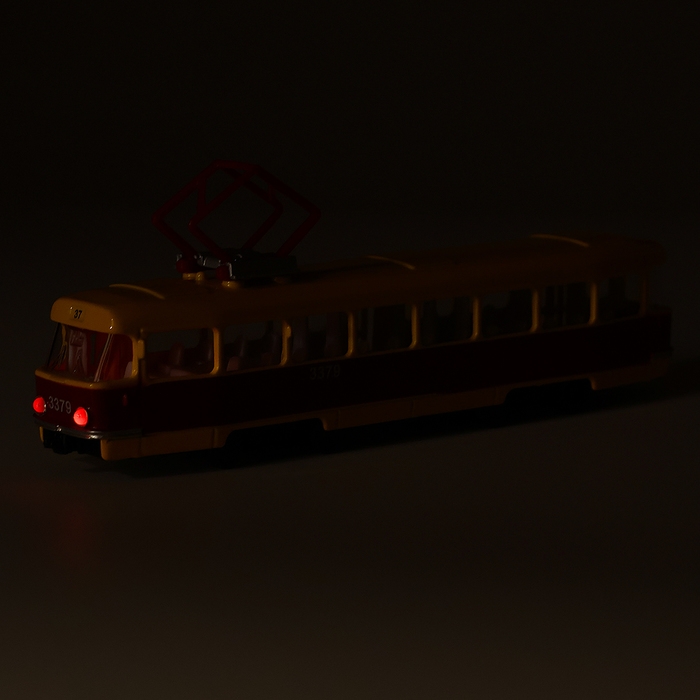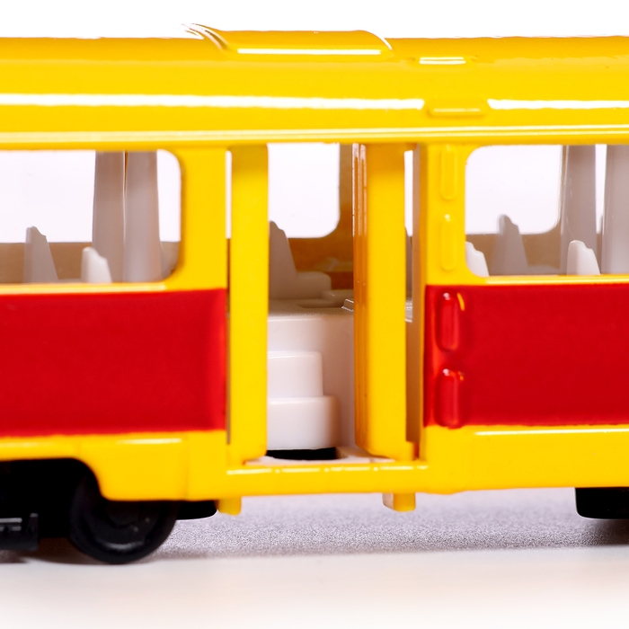 Машина металлическая «Трамвай», световые и звуковые эффекты, открываются двери, инерционная, 18 см