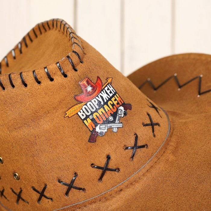 Ковбойская шляпа «Вооружен и опасен», р-р. 56-58, цвет коричневый