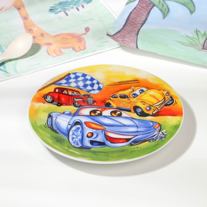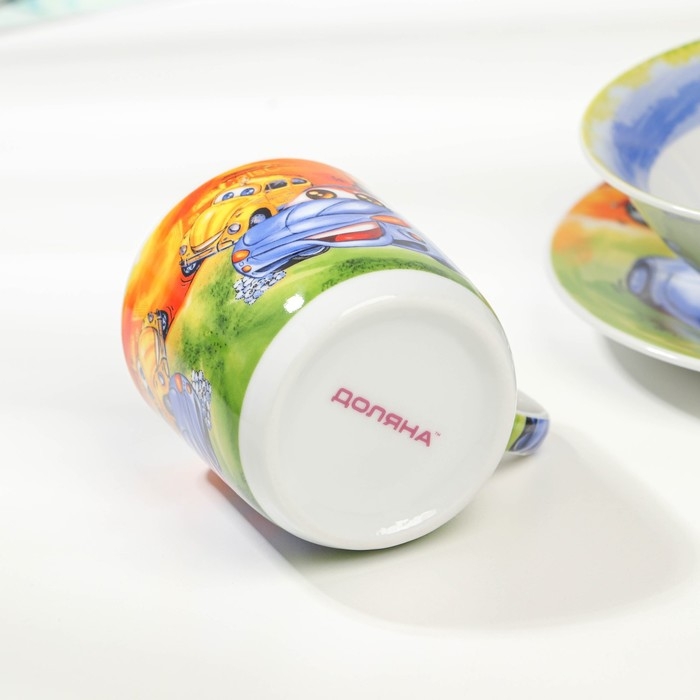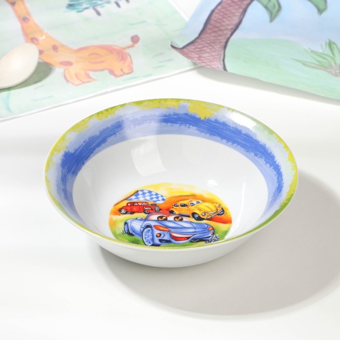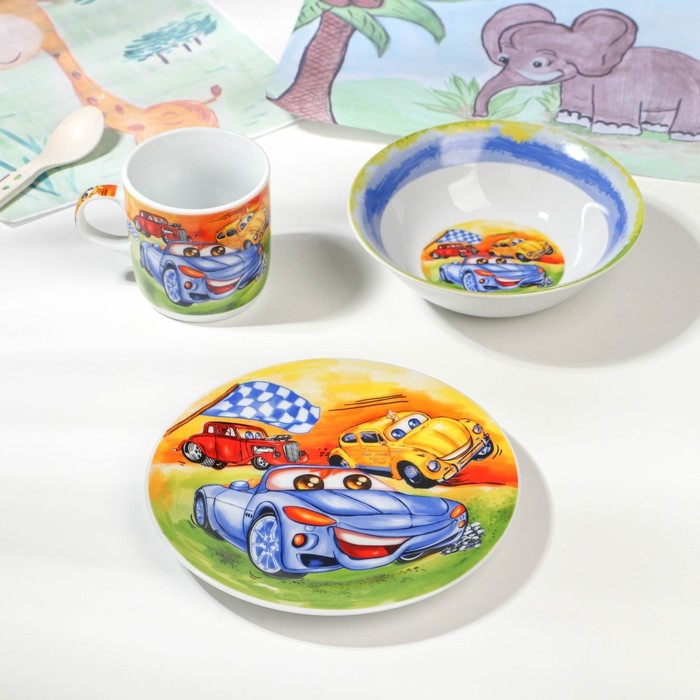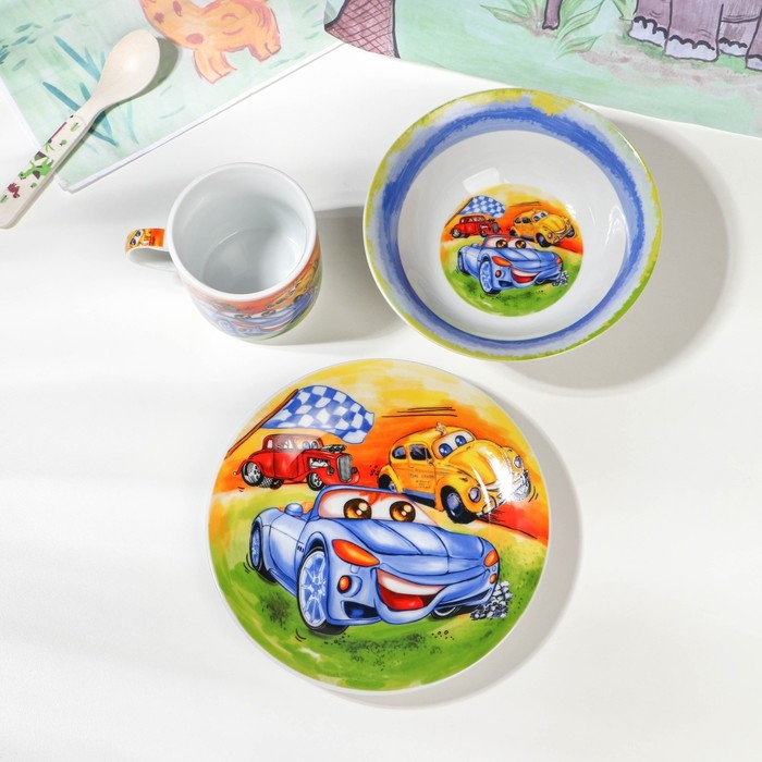 Набор детской посуды из керамики Доляна «Гонки», 3 предмета: кружка 230 мл, миска 400 мл, тарелка d=18 см