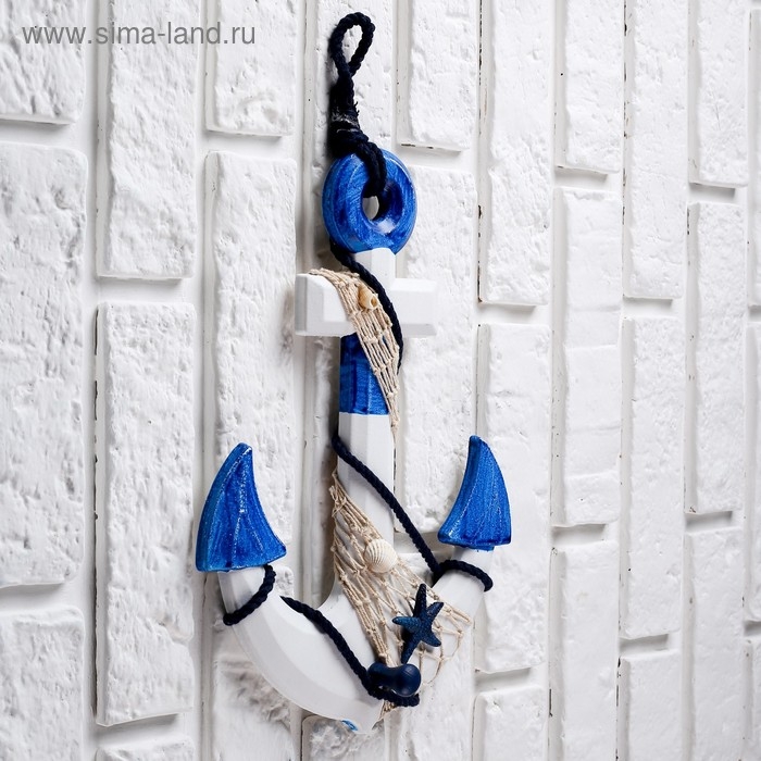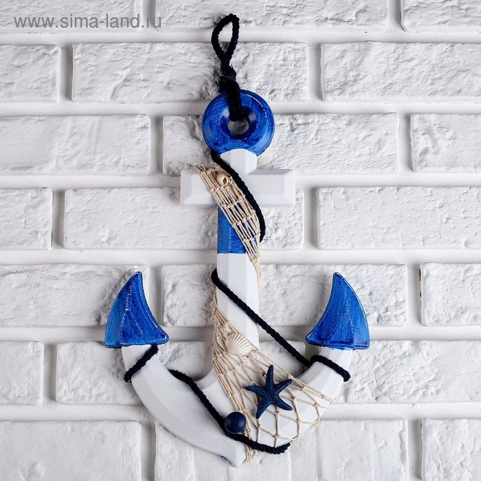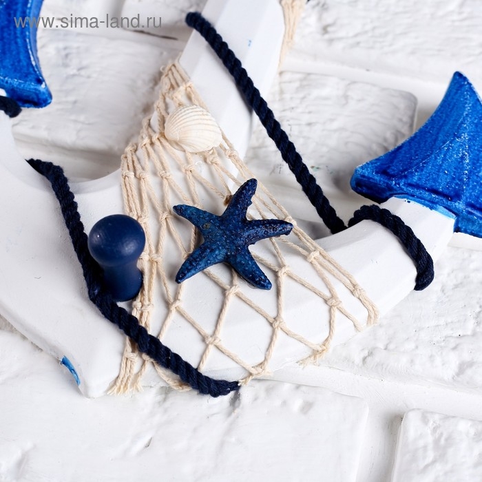 Якорь интерьерный с веревкой и звездой, бело-синий 5*23*32см