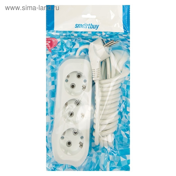 Удлинитель Smartbuy, 3 розетки, 3 м, 16 А, 3500 Вт, ПВС 3х1 мм2, с з/к, белый