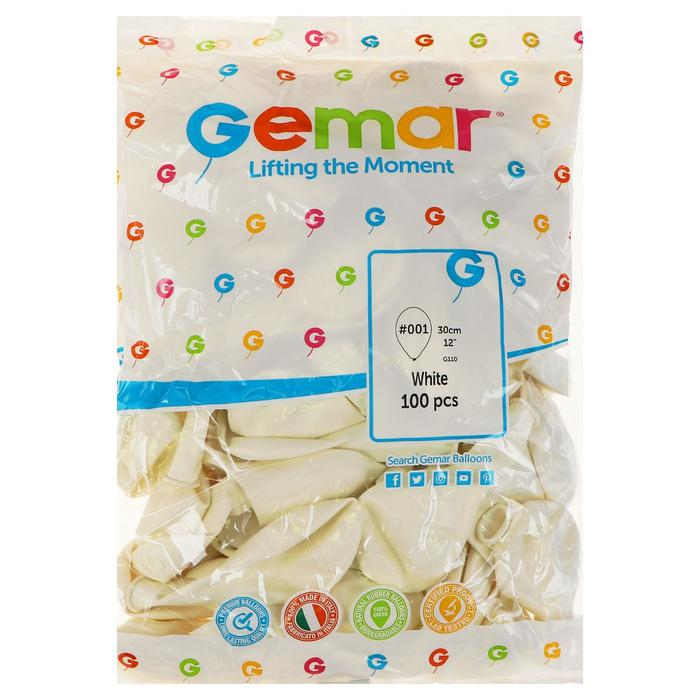 Шар латексный 12", пастель, набор 100 шт., белый